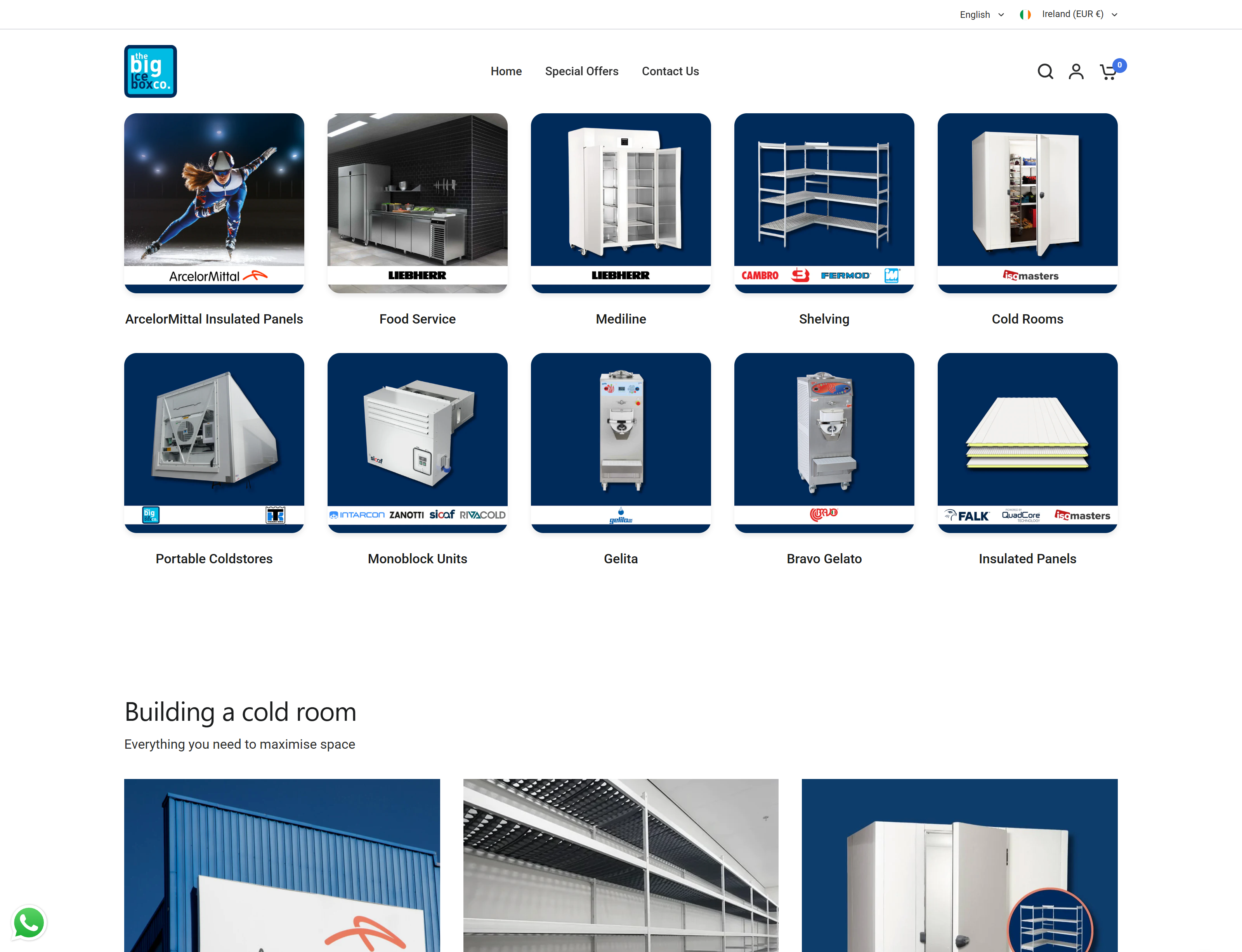 This website is a business to business or “trade” website. Shopify is very good at B2B and Big Ice Box use Shopify to handle complex cross border VAT arrangements, pallet shipping, local market pricing, invoices with credit terms, and lots more. But the beauty of the website is that if a consumer wants to buy a Liebherr fridge then the website will sell it to them – no harm. Imagine waking up at 8am on a Sunday morning and finding that you sold a €900 fridge while you slept. That’s the power of a great e-commerce website.