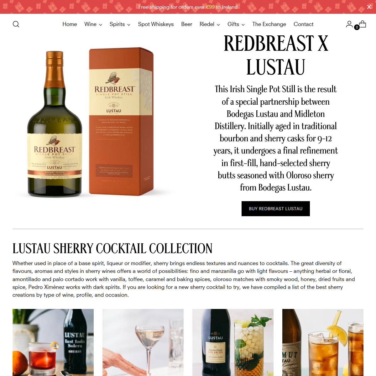 Mitchell and Son accepted our proposal, and we built the website over a few weeks in April 2024. We updated the site to a Shopify 2.0 theme, removed 30 apps and replaced them with native Shopify functionality, and we restructured the site for a better user experience and better search engine optimisations. We introduced meta fields for data structure and functionality – allowing better filtering, searching, and management of their vast catalogue of products. The design of the website was refreshed significantly to bring it up to the standard expected of Ireland’s premier wine and whiskey supplier.